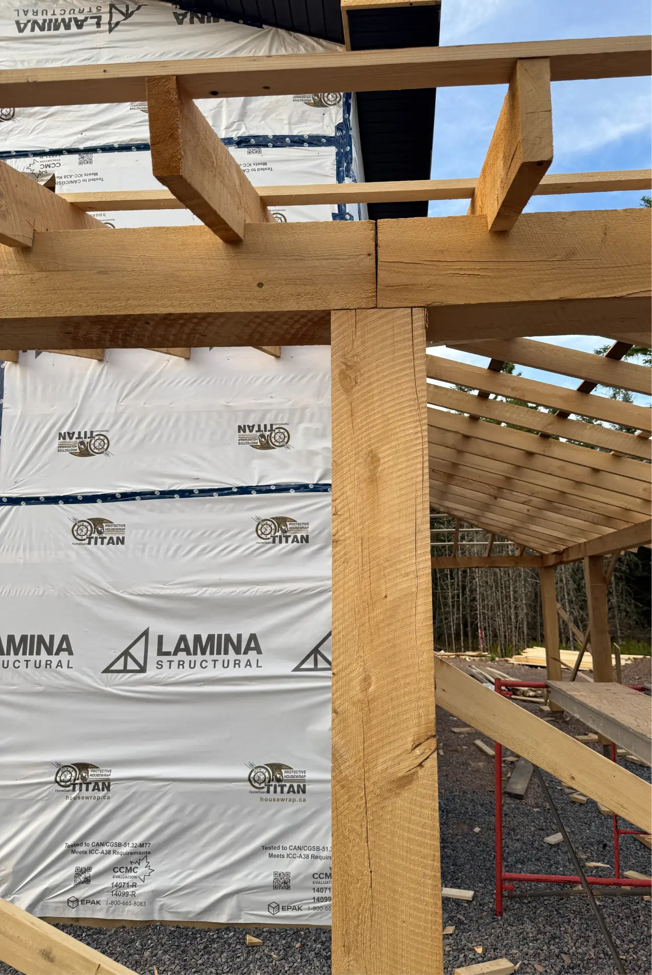 A Lamina Wood post frame building starts with engineered wood columns that support the wall and roof assemblies.